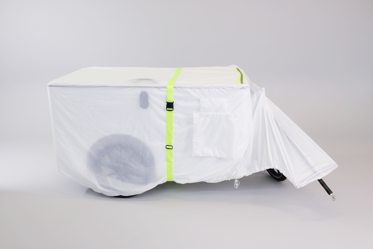 Stroom’s large carbon fibre e-trailer connects seamlessly to any bicycle, ebike or Micro EV, instantly expanding carrying power with up to 150 kg load capacity and 1,300 liters of cargo space.